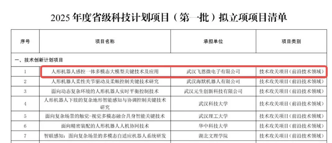 “人形机器人感控一体多模态大模型关键技术及应用”专项聚焦人形机器人智能感知、决策控制与多模态大模型融合等前沿方向,旨在突破关键技术瓶颈,推动人形机器人在智能制造、社会服务等领域的创新应用,为湖北省乃至全国人工智能产业发展注入新动能。